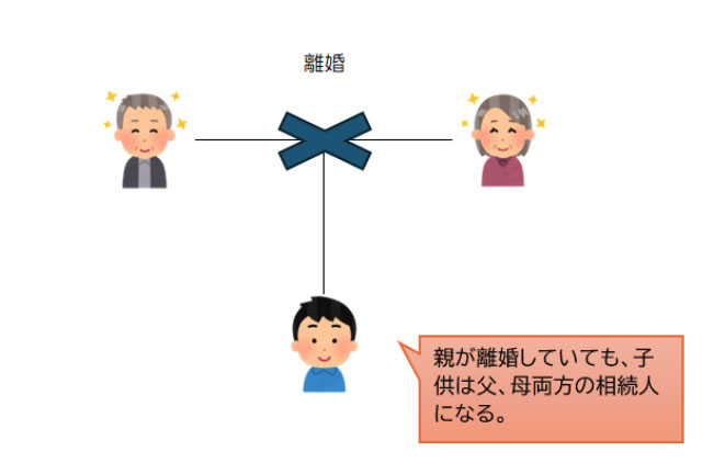 両親が離婚したとしても、子供は父と母、両方の相続人になります。