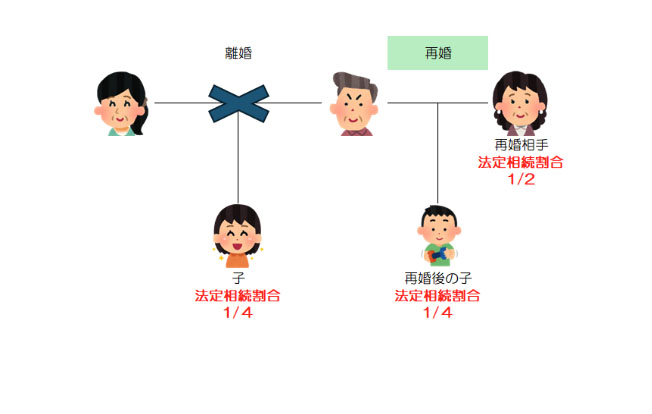 離婚した相手の子供だから相続分が変わるという事は無く、通常通りの割合になります。