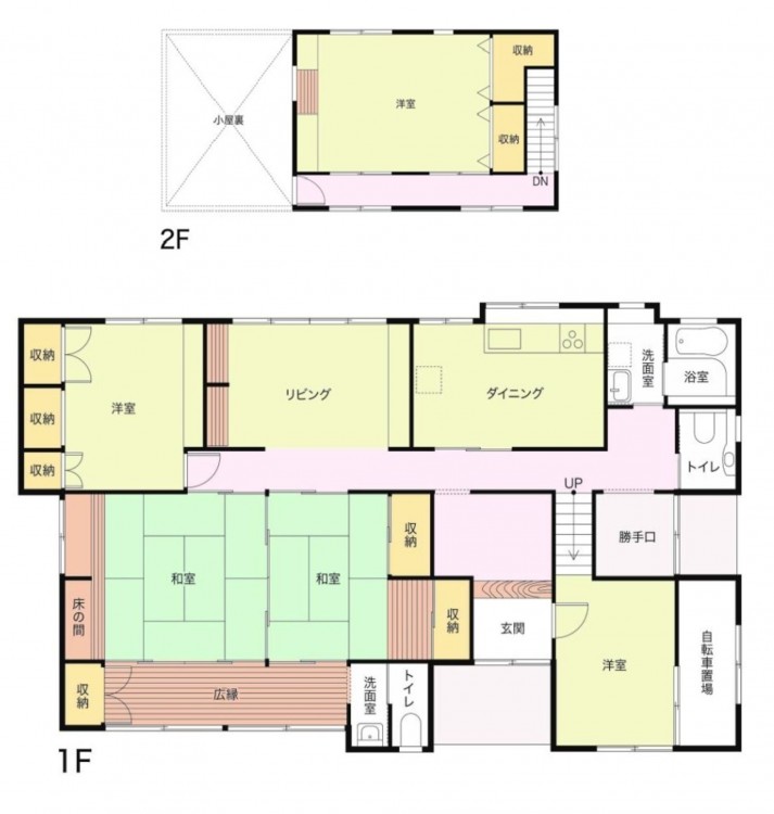 倉庫兼駐車場1台分と駐車スペース4~5台分 広々と有効活用できます。