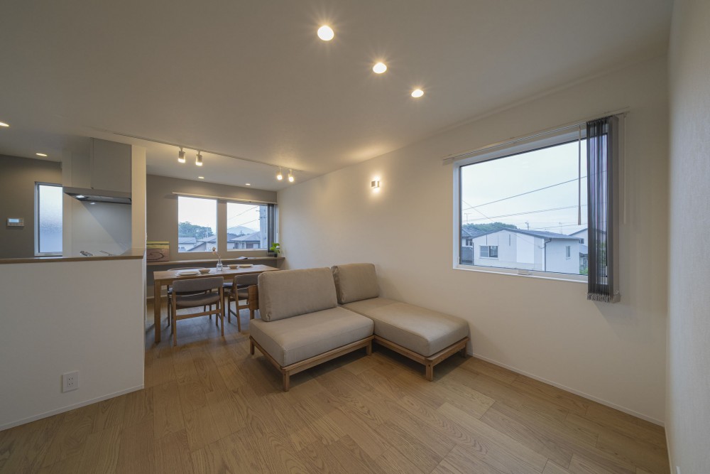 光と解放感にあふれた2階リビング。ビルトインガデージのある住まい。