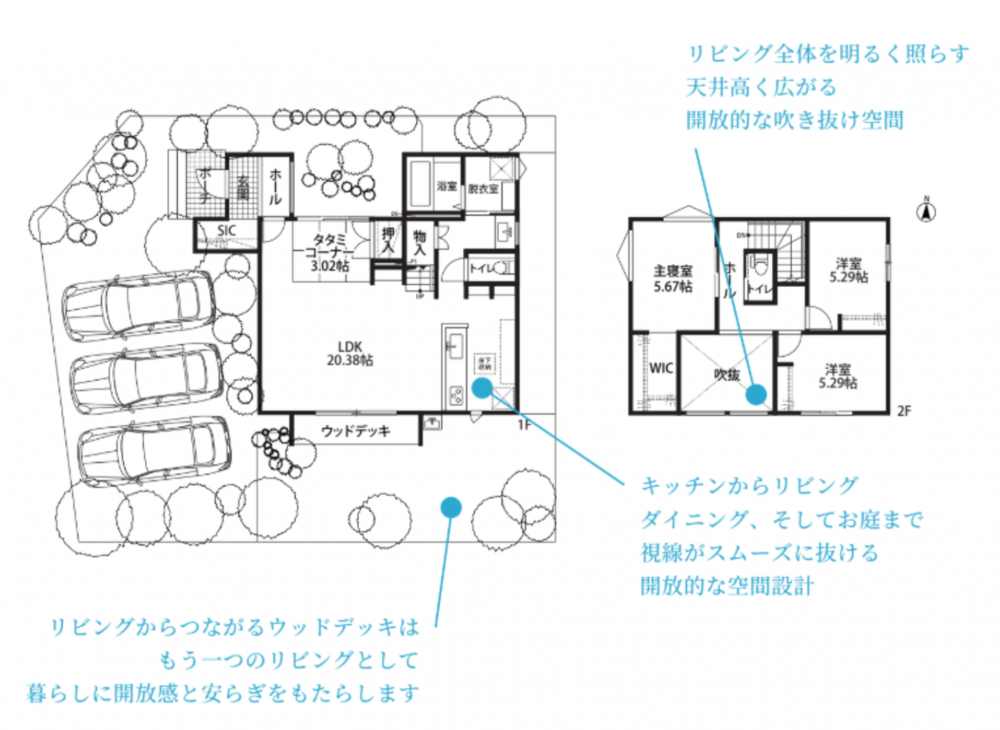 リビングとつながるウッドデッキはリビングを解放あるひとつの空間にしてくれます。