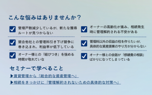 管理戸数を守りながら収益を伸ばす!攻めの資産提案術セミナー