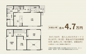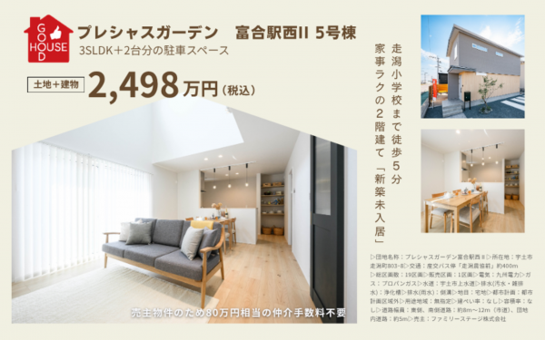 物件販売価格: 2,498万円(税込)お支払い例: 月々 4.7万円〜(頭金48万円、ボーナス払い併用の場合)間取り: 3SLDK + 駐車場2台分ここがポイント!:走潟小学校まで徒歩5分で通学も安心。「家事ラク」を考えた動線の2階建て。売主物件のため、仲介手数料(約80万円相当)が不要です!家具一式、全室照明、エアコン2台が最初から付いています。
